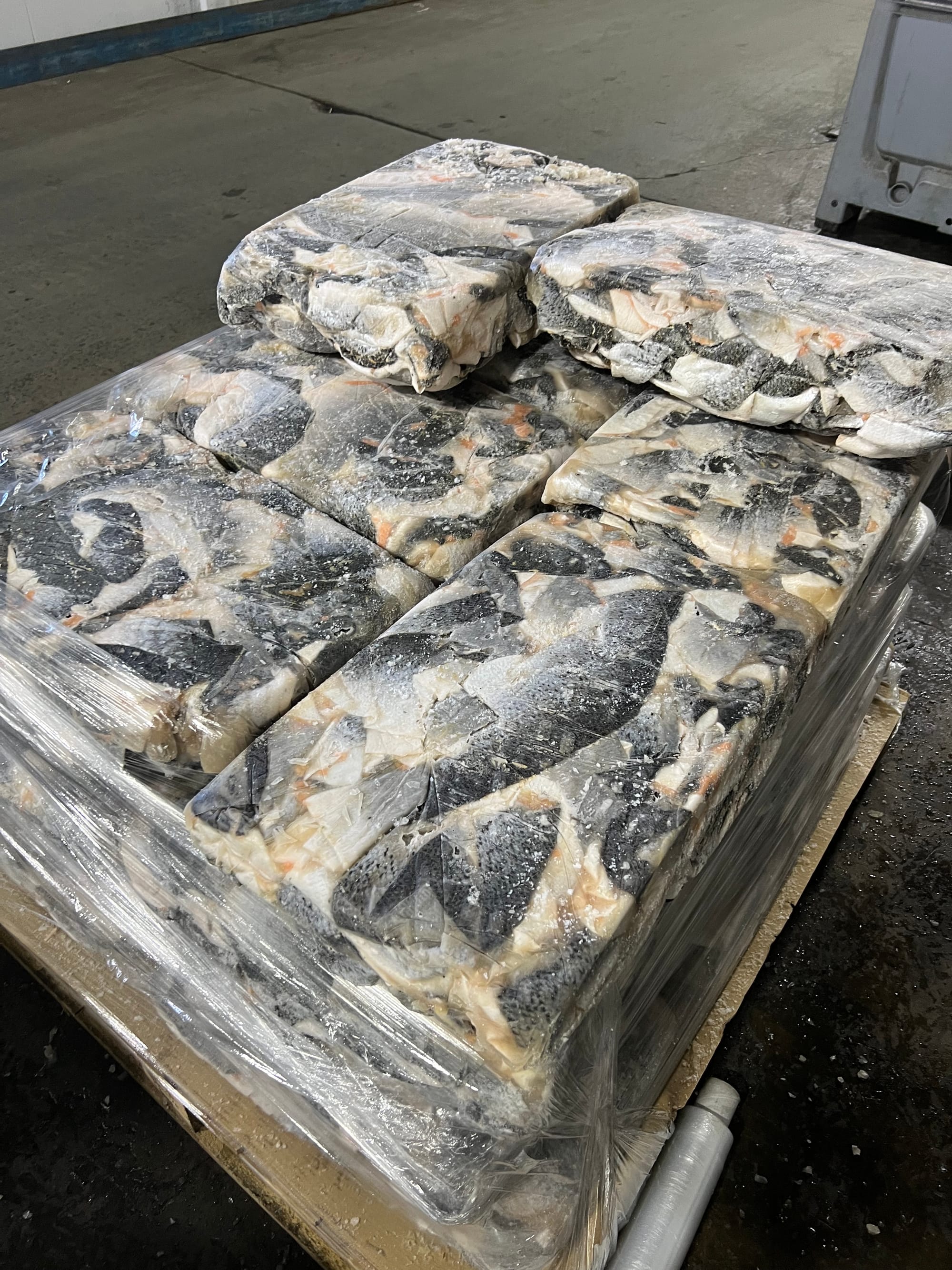Talking of fish, in order to pay my bills, I work 2 days for a friend of mine who sells frozen fish in containers to customers around the world. The specifics of the fish are salmon, chopped up into heads, tails, spines and bellies, as well as mince, trim and offcuts. This job has enabled me to keep making art although it has un-enaabled me to enjoy eating meat and fish. ALSO: you cannot feel completely bohemian when you sell fish 2 days a week, and maybe that's for the best as I have a dangerously wavering ego which can inflate at speed at the slightest compliment about my lifestyle. QUESTION: Are the bohemians all in fact bourgeouis, and is selling fish the really bohemian thing to do in 2025 as an artist? I couldn't possibly say. Here is a picture of some salmon skins. I peeled the plastic wrap off 23 pallets of them this summer. If you think that’s niche I used to be the shoemaker for Shrek(s) the waxwork(s).